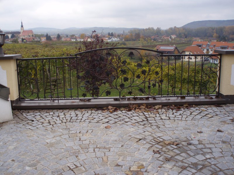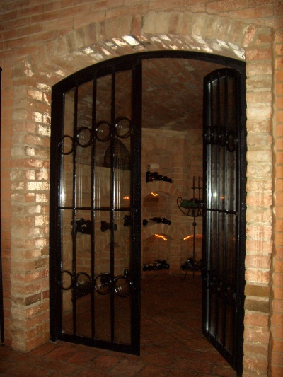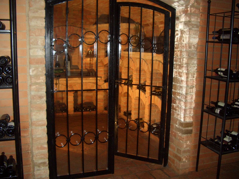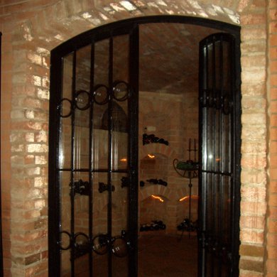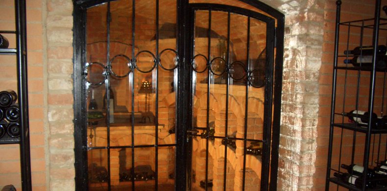 Als toller Blickfang jedes Weinkellers erweist sich eine Schmiedeeisene Einganstüre mit Isolierglas kombiniert.