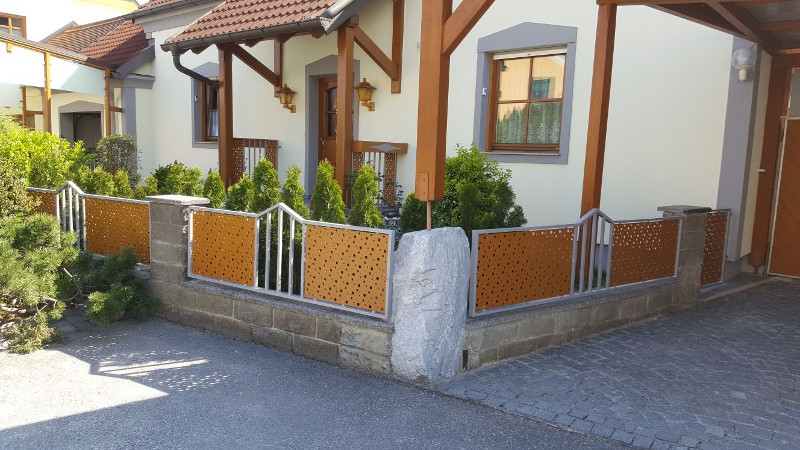 Zäune können je nach Wunsch klassisch und schlicht oder handgeschmiedet mit aufwendigen Mittelmustern oder Lanzen gefertigt werden.